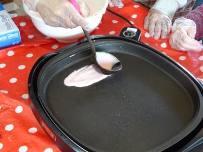 後は、形を作りながら薄く生地を焼いて下さいました(*´▽`*)