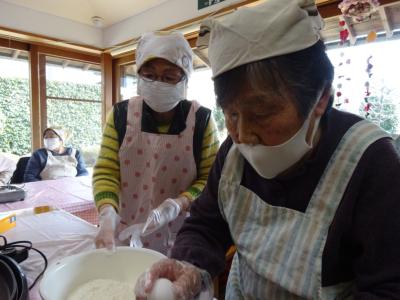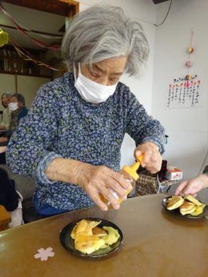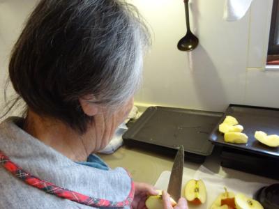 レクリエーションに使うリンゴの皮剥きをお母様がお手伝いして下さいました