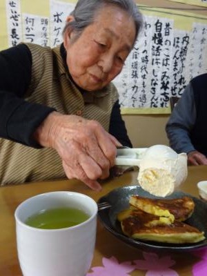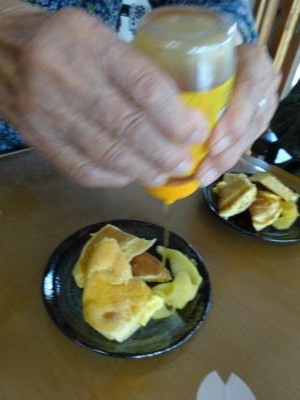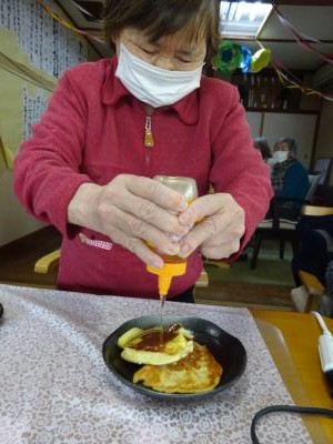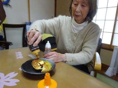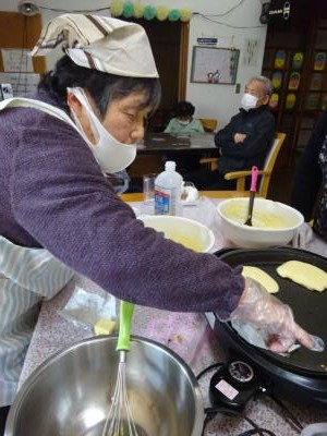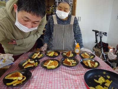 皆様にお願いをいたしましてホットケーキを焼いていただきました