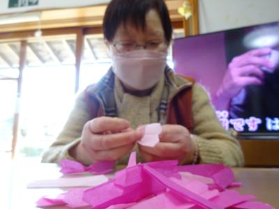 音楽を聴きながら、桜作りをしてくださいました