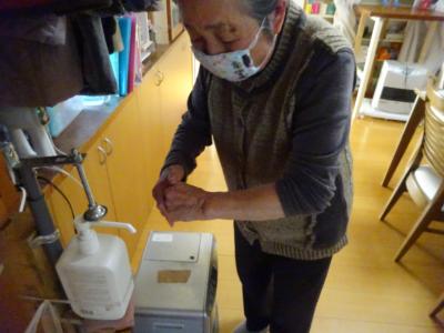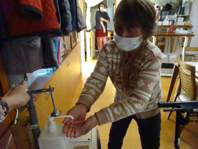 朝1番に手指消毒をして、1日が始まります