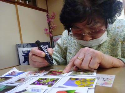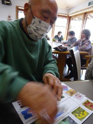 スタッフが引いた写真と同じものがあったら、印をつけていきます〇✖