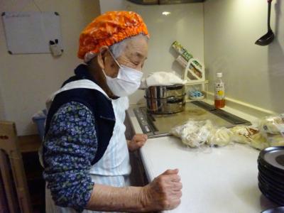 一方、台所では今日のおやつ「特選肉まん」をお母様が蒸かして下さいました