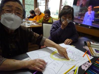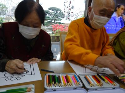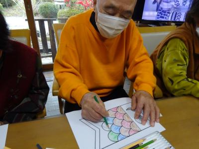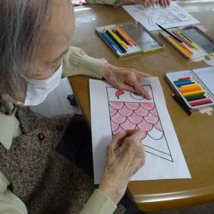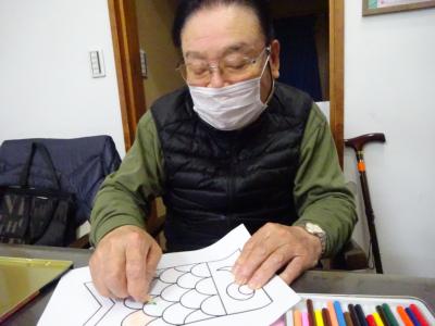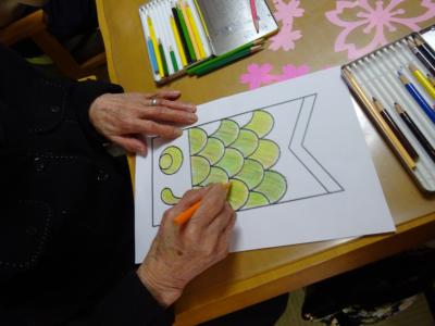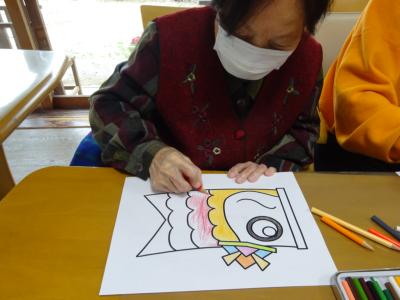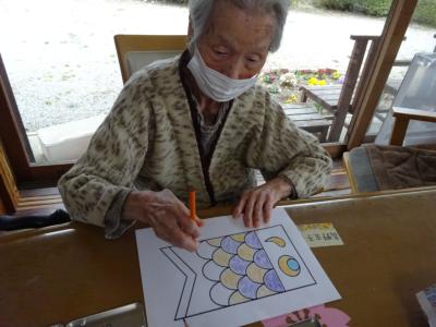 兜と菖蒲の花の色塗りをして頂いて、工作に使わせて頂きたいと思います