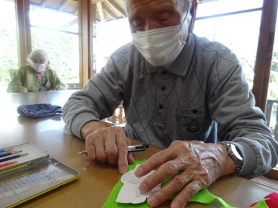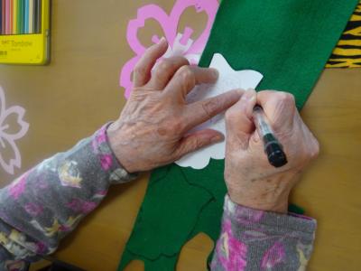 フェルトに鯉のぼりの軸の色の部分の型取りをして頂いたり🎏