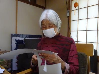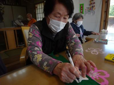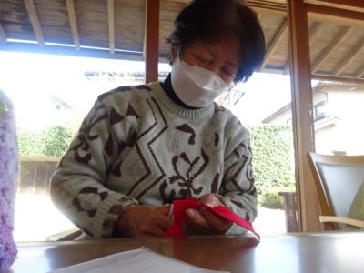 本日のレクリエーションは、春の庭を眺めつつの