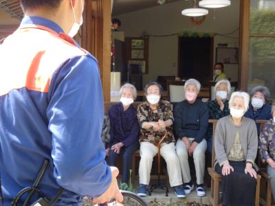 消防士さんの話を真剣に聞く皆様