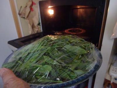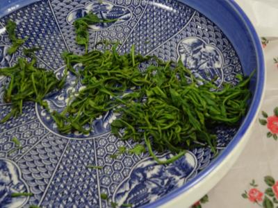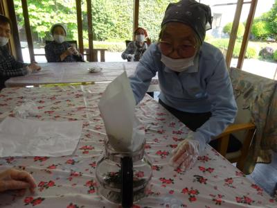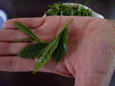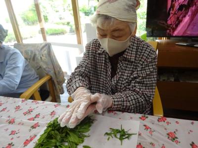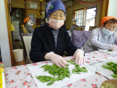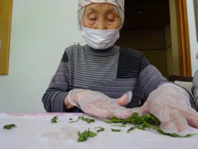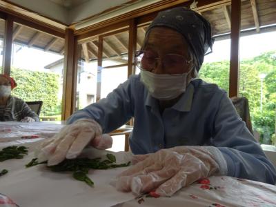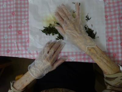 お茶揉みをしたことがあるお母さん、優しい手つきで慣れていますね
