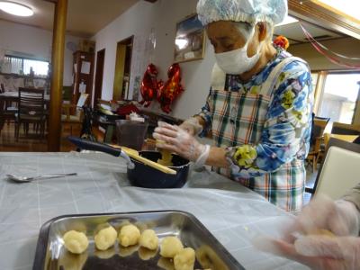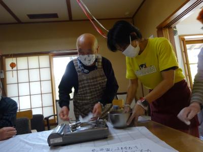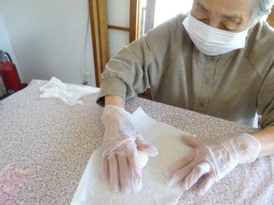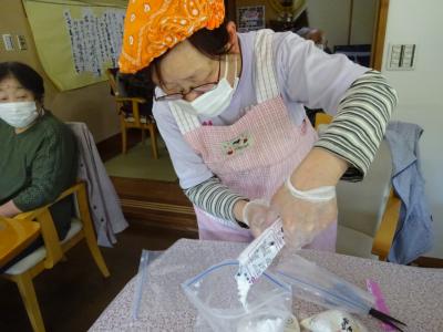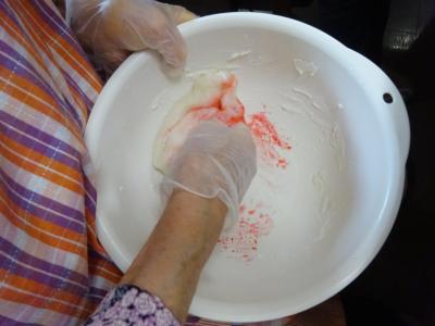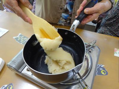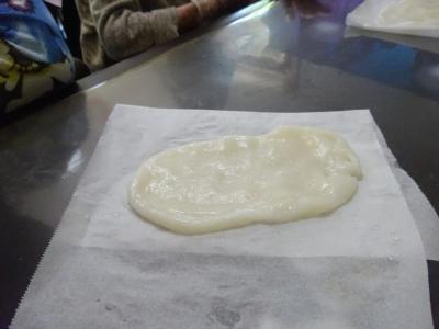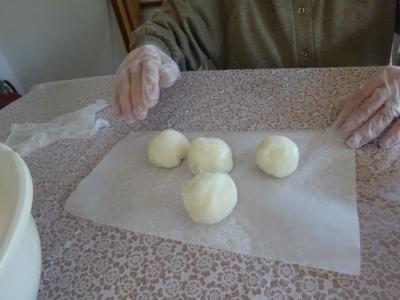 電子レンジを使い温めたものを又、しっかりとこねて参ります