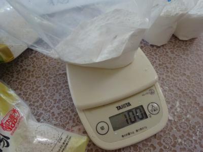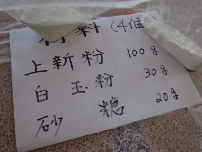 柏餅づくりのレシピ見ながら粉の計量からお願い致しました