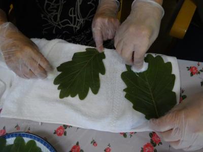 柏の葉っぱも水洗いをして一枚ずつ丁寧に水気を取っていただきお餅が貼り付かないように葉っぱに薄く油を塗って頂きました