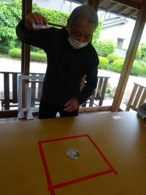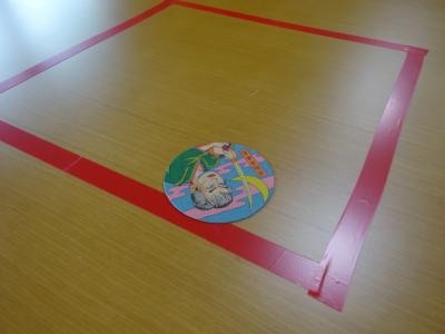 机には、簡易的ではありますが土俵も用意して、駄菓子屋さんで購入してきた本物のメンコを土俵から出したり、ひっくり返したり、下にもぐれば勝ちとなります\(゜ロ\)(/ロ゜)/