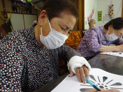 本日のレクリエーションは、「夏の大作・・・花火の壁画」を作っていきたいと思います(*´▽`*)