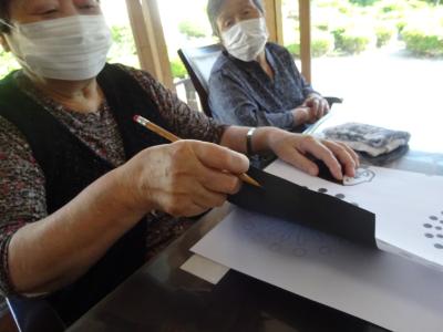 写しとった絵は・・・スタッフがカッターで切り抜きます(=゚ω゚)ノ