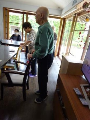 そんな日は熱中症にもなりやすくなりますので、望みの幸望庵では窓を大きく開けて換気しながら、室内気温に気を配りつつ、時にはマスクを外しながら、体操を行いました