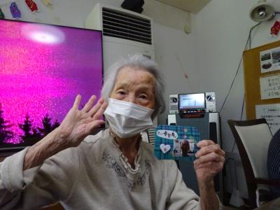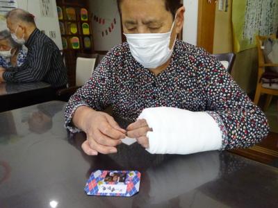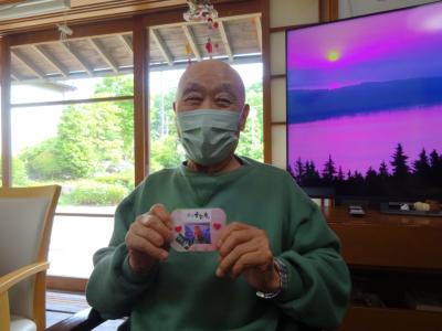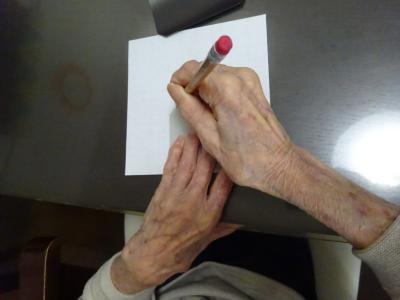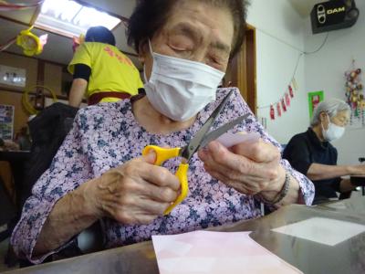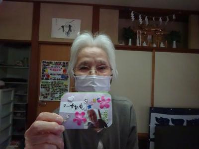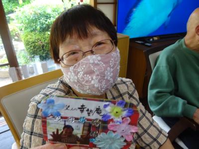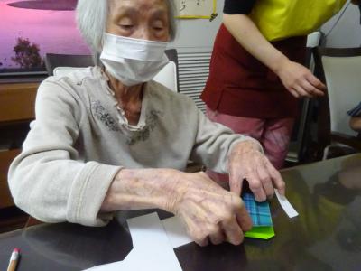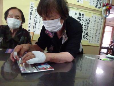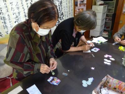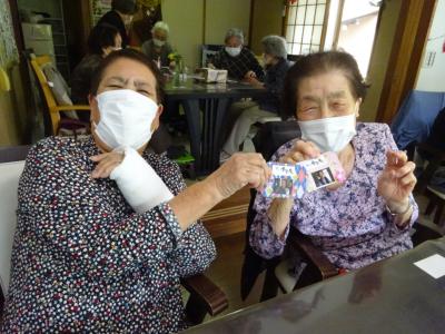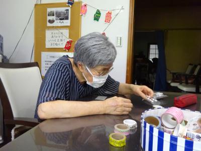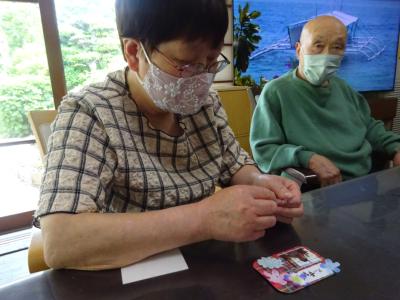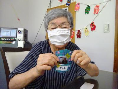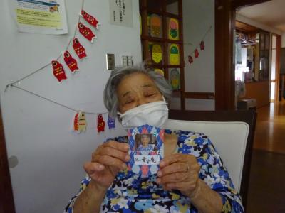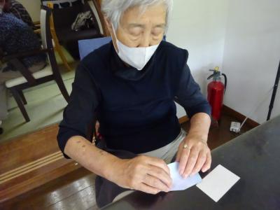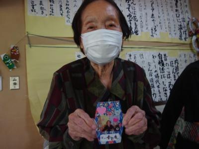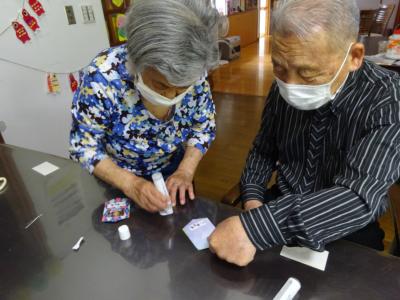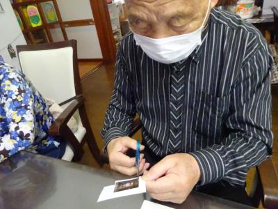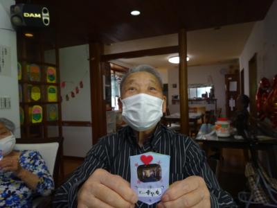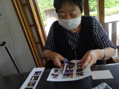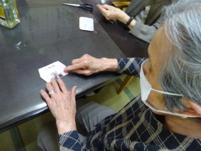 午前中の体操の時間に撮らせて頂いた、皆様の笑顔写真をプリントしたものを切り、一人一人に配ります