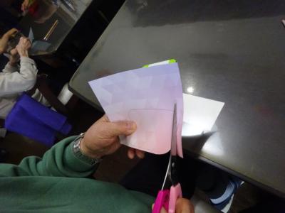 選んで頂いた折り紙を、マグネットと同じ形に型を取り切っていきます