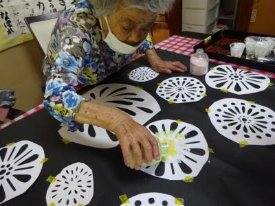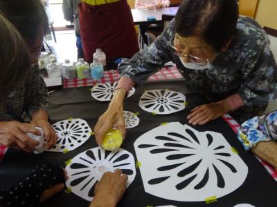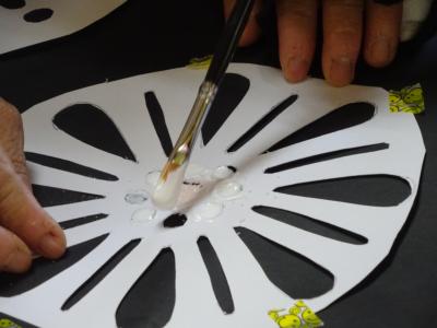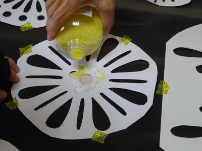 黒の模造紙の上に場所を決めて頂き仮止めしていきます