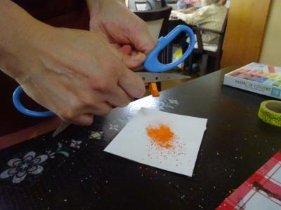 綺麗な色の砂で色を付けていきます