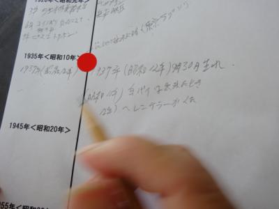 その後は、昭和の目立った出来事を紹介しながら、ご自身の思い出を話したり、年表に記入していって頂きました