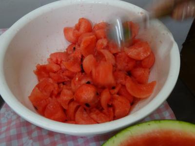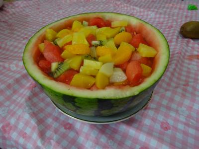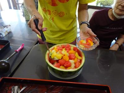🍉を器にしてチョット綺麗に飾り付け致しました