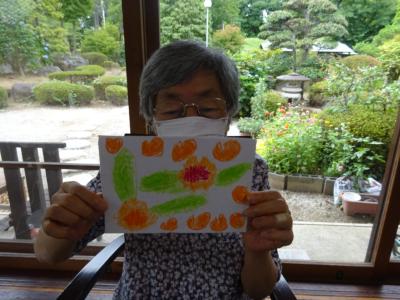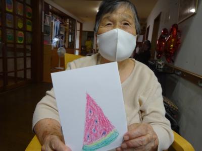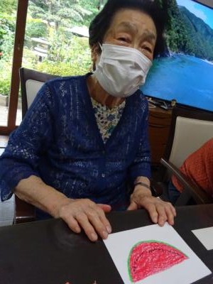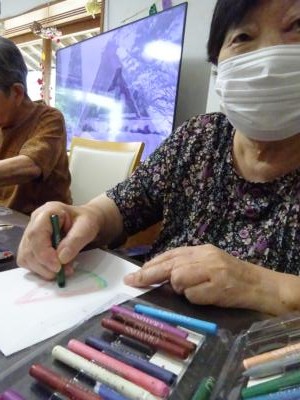 ムシムシしているので少し涼を感じて頂ければと思いまして今日のレクリエーションは、涼しい夏を描いて頂きます