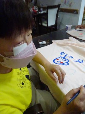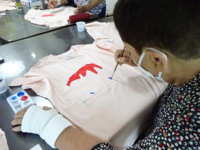 布にも書ける特殊な「絵具」を使いまして色を入れました指でOK