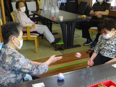 朝の体操では、お手玉を使って楽しそうな体操をしていらしゃす