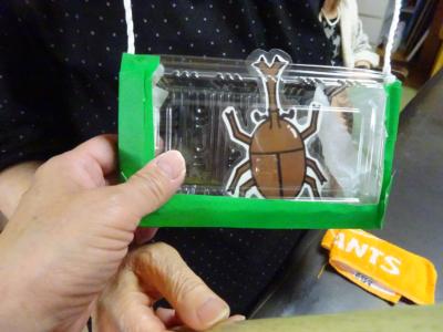 お母さんは、苦手なカマキリを避けカブトムシを探しています