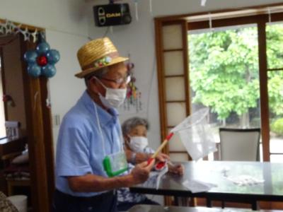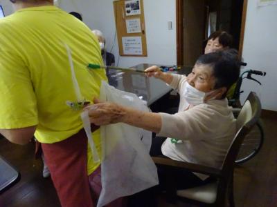 おやおや、スタッフの背中にもバッタがくっついていたんですね