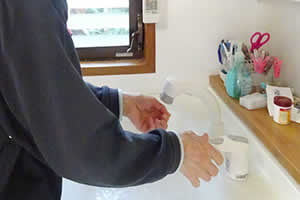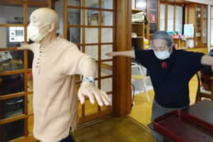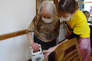 幸望庵到着:検温・手洗いうがい・手指消毒・バイタル測定