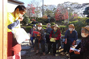 ご利用者様のお迎えから始まります。9:30までに幸望庵に到着すように皆様をお迎えに行きます。